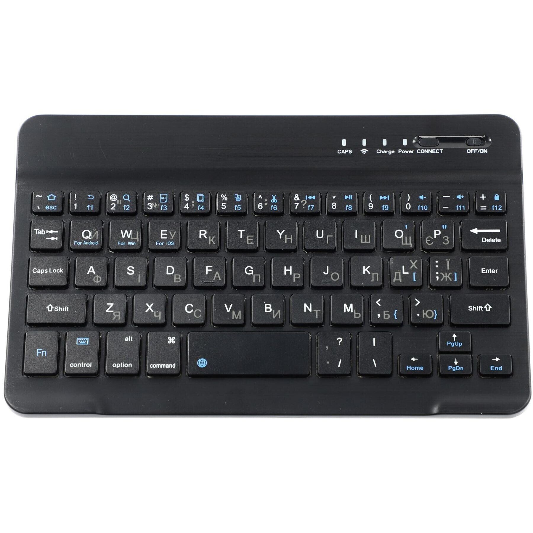 Підключається клавіатура за допомогою Bluetooth: 3.0, і здатна працювати близько 100 годин завдяки вбудованому акумулятору. Підсвітка клавіш тут не передбачена, але завдяки контрастній розмітці, та добре читається навіть при слабкому освітленні. Користувачеві доступні англійська та українська розкладки, а також набір функціональних клавіш. За необхідності чохол уміє складатися в підставку для зручнішого набору тексту.