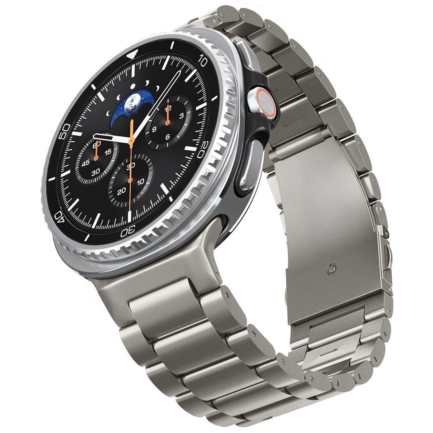 Ремінець Spigen Modern Fit Titanium для Samsung Galaxy Watch 8 (40/44mm) / Galaxy Watch 8 Classic AMP10122 — це акцент на статус, комфорт і довговічність. Легкий і міцний титан робить ремінець майже невідчутним на зап'ясті, зберігаючи при цьому відчуття надійності та високої якості. Лаконічний металевий дизайн підкреслює стиль годинника і однаково доречний у діловій обстановці, повсякденному житті та на офіційних заходах. Точна посадка, надійна застібка і можливість швидкої установки без інструментів роблять цей аксесуар зручним на кожен день. Spigen Modern Fit Titanium — вибір для тих, хто цінує преміальні матеріали, акуратний зовнішній вигляд і бездоганний комфорт.