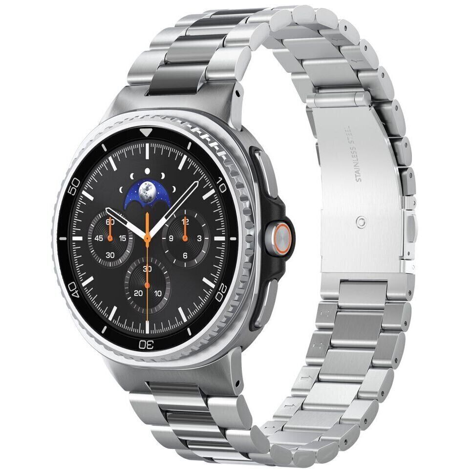 Ремінець Spigen (SGP) Modern Fit для Samsung Galaxy Watch 8 (40/44mm) / 8 Classic (AMP10120) — це сучасне рішення для тих, хто цінує стиль, комфорт і надійність. Він виконаний з нержавіючої сталі 316L, стійкої до зносу і корозії, що робить аксесуар довговічним і практичним у повсякденному використанні. Поєднання полірованих і матових ланок надає браслету збалансований, акуратний зовнішній вигляд, який підходить як для ділового стилю, так і для повсякденного образу. Продумана форма ланок забезпечує зручну посадку на зап'ясті і не створює тиску навіть при тривалому носінні. Конструкція застібки з швидким замком дозволяє легко надягати і знімати ремінець, забезпечуючи надійну фіксацію без зайвих зусиль. Ремінець Modern Fit підкреслює зовнішній вигляд годинника і при цьому залишається функціональним аксесуаром, розрахованим на довгу службу.