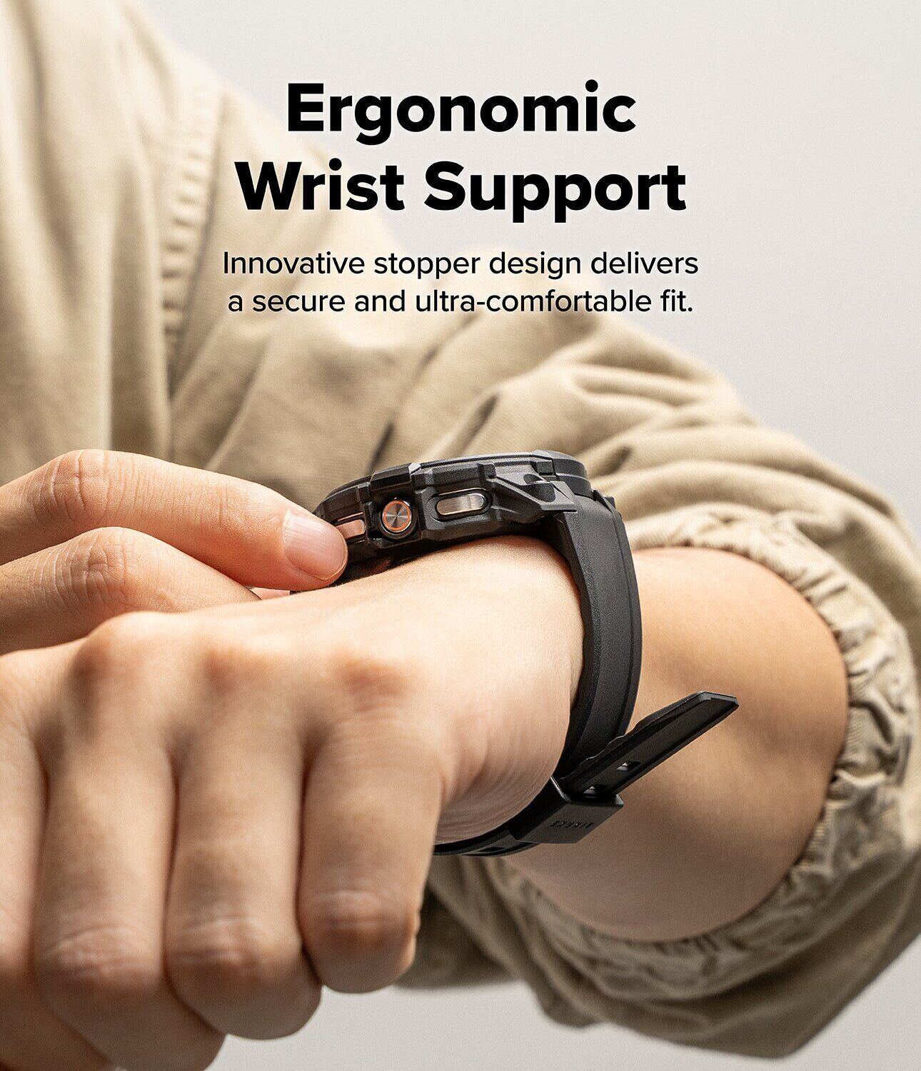 Ремінець Ringke Rugged Gear (FW) для Samsung Galaxy Watch 8 Classic — це практичне рішення формату 2-в-1, яке поєднує захисний кейс і ремінець в одній конструкції. Модель розроблена з урахуванням особливостей корпусу годинника, забезпечуючи точну посадку та надійну фіксацію без люфтів.
