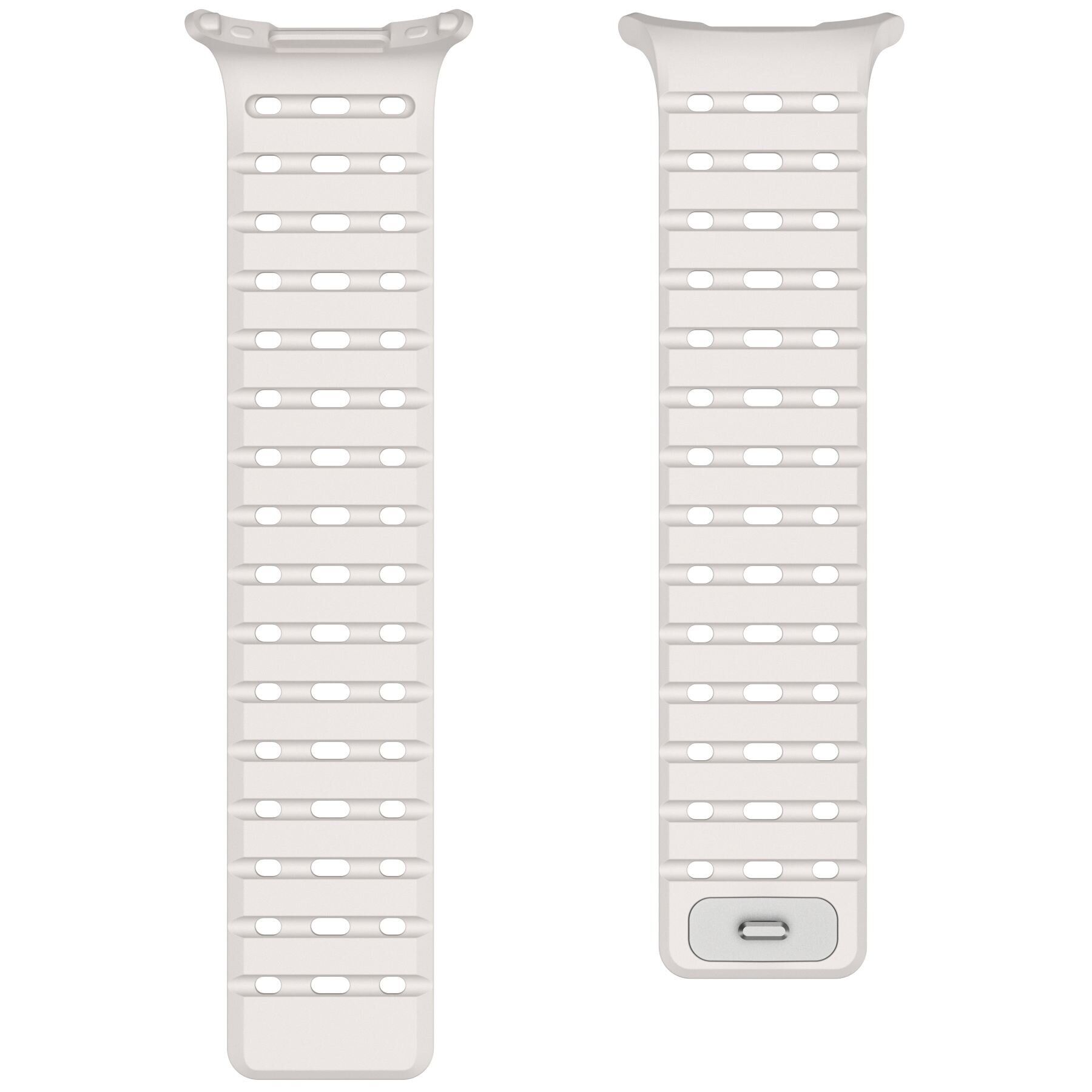 Reframe Sport Band – це функціональний і зручний ремінець, створений спеціально для годинників Samsung Galaxy Watch Ultra (47 мм) і Ultra (2025). Він виготовлений з м'якого, гнучкого силікону з перфорованою поверхнею, яка покращує циркуляцію повітря і знижує потовиділення при активному використанні. Такий матеріал не викликає подразнення шкіри та підходить для щоденного носіння, включаючи тренування та інші активності. Ремінець легко встановлюється і знімається завдяки простому механізму кріплення, що не вимагає додаткових інструментів. Він щільно фіксується на корпусі годинника і забезпечує стабільність навіть під час інтенсивних рухів. Довжина зручно регулюється, що робить аксесуар універсальним для користувачів з різним обхватом зап'ястя. Reframe Sport Band випускається в декількох колірних варіантах, дозволяючи підібрати стиль під індивідуальні уподобання.