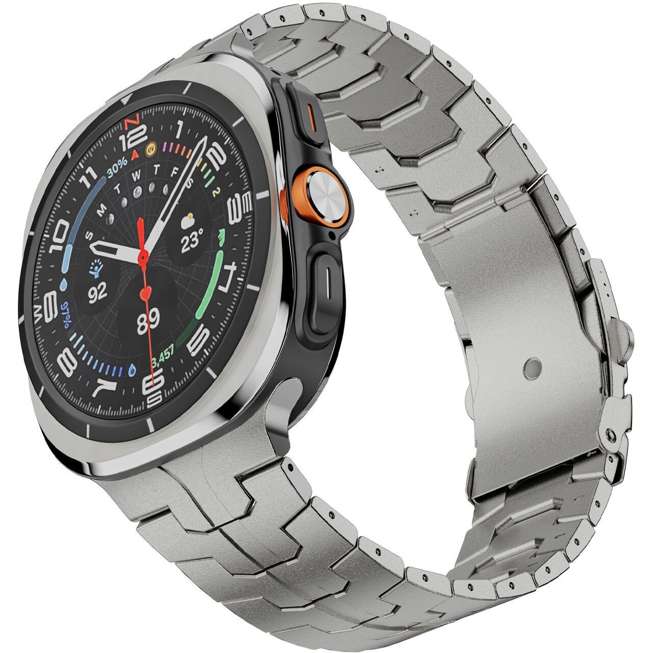Ремінець Reframe Titanium Band для Samsung Galaxy Watch Ultra (47mm) / Ultra (2025) – це стильне і надійне рішення для тих, хто цінує преміальні матеріали і практичність в кожній деталі. Модель виготовлена з титану, що забезпечує не тільки малу вагу і стійкість до зовнішніх впливів, але і привабливий зовнішній вигляд, що відповідає сучасним тенденціям дизайну розумних годинників. Конструкція продумана до дрібниць: від системи кріплення до надійної застібки, що гарантує щільну і безпечну фіксацію на зап'ясті. Ремінець адаптований під всі актуальні версії Galaxy Watch 8, включаючи Classic, завдяки чому його легко інтегрувати в будь-яку конфігурацію пристроїв.