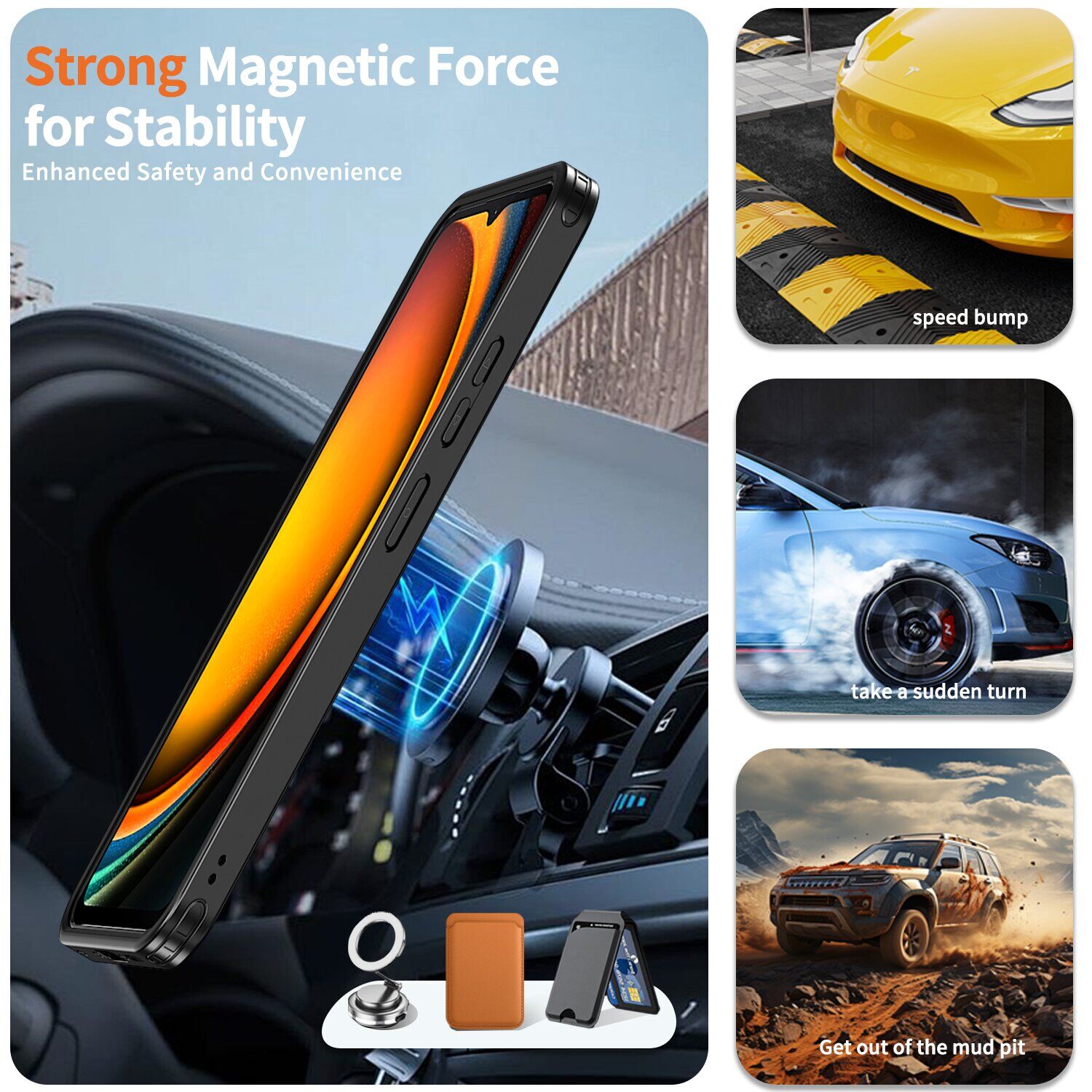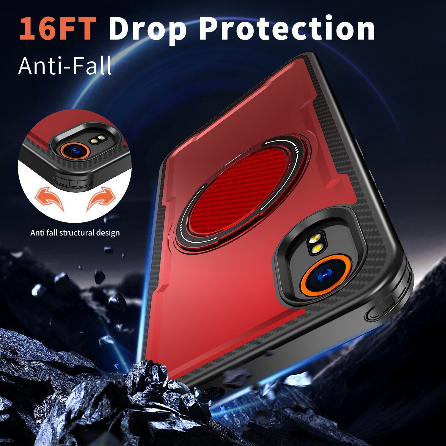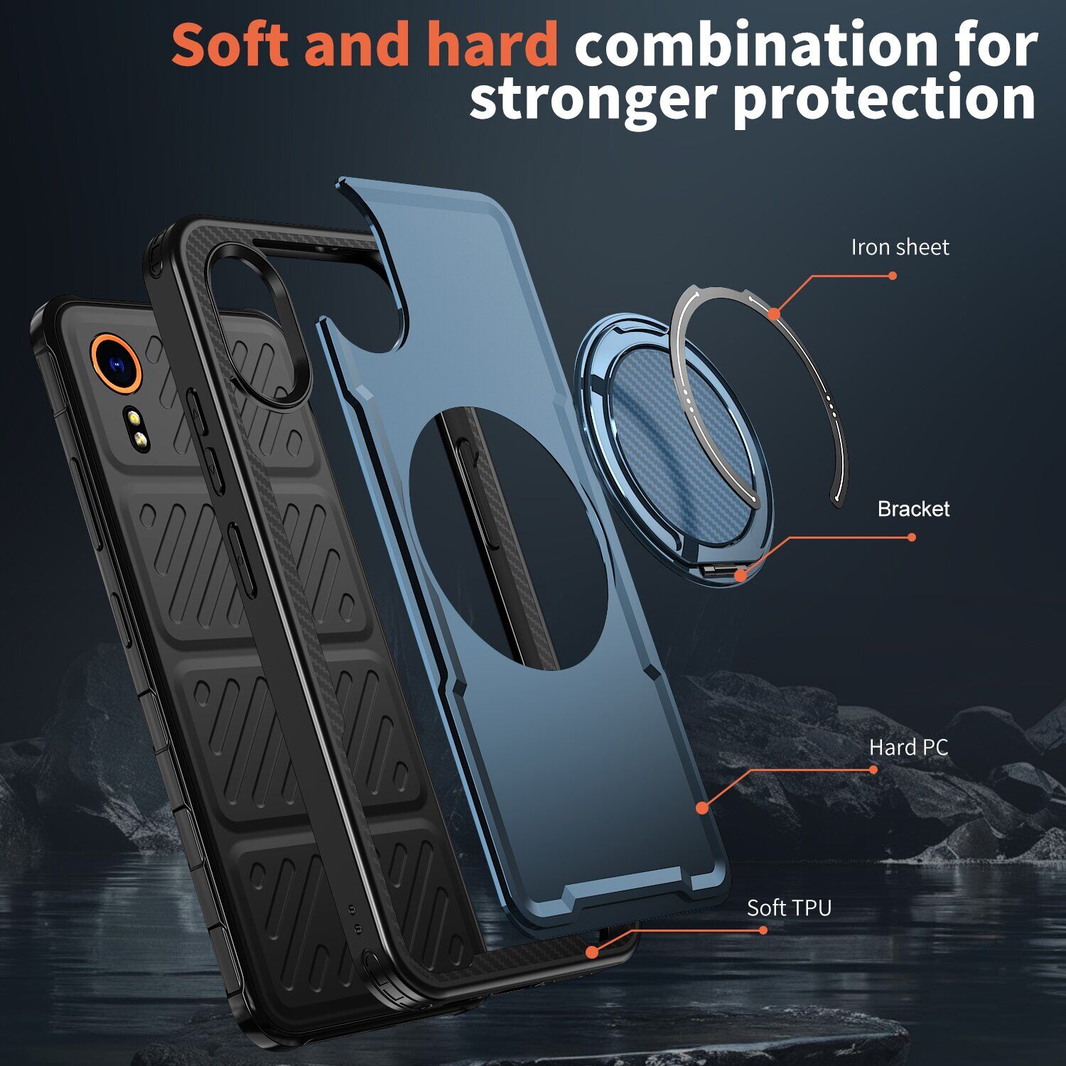Захисний чохол з кільцем-підставкою Reframe Grip MagSafe розроблений для Samsung Galaxy Xcover 7 (G556) з урахуванням геометрії корпусу і розташування функціональних елементів. Конструкція виконана з комбінації TPU і полікарбонату, що допомагає зберегти форму виробу при щоденній експлуатації та знизити вплив ударних навантажень. Посилені кути сприяють рівномірному розподілу навантаження при падіннях і випадкових ударах, а в області модуля камери передбачений піднятий бортик висотою 1,5 мм, який знижує ризик контакту лінз з поверхнями. Вбудоване магнітне кільце забезпечує сумісність з магнітними зарядними пристроями, автомобільними тримачами та іншими аксесуарами. Форма виробу передбачає точні вирізи для роз'ємів і динаміків, а також окремі накладки на бічні клавіші для збереження звичного відгуку. Металеве кільце-підставка з поворотом на 360° дозволяє зручно розмістити смартфон для перегляду контенту або відеозв'язку.