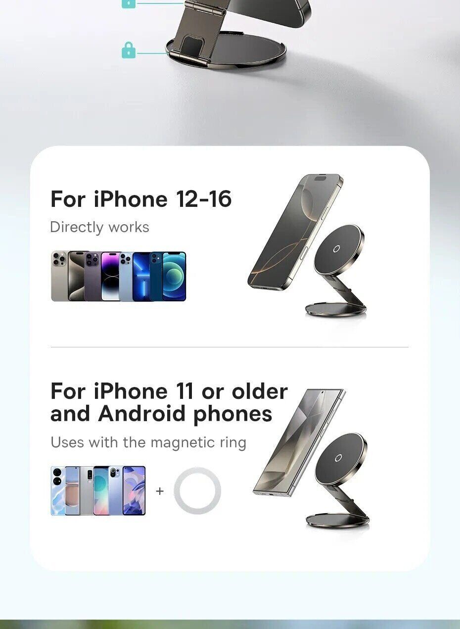 - Надійна магнітна система стабільно утримує пристрій без ризику зміщення;