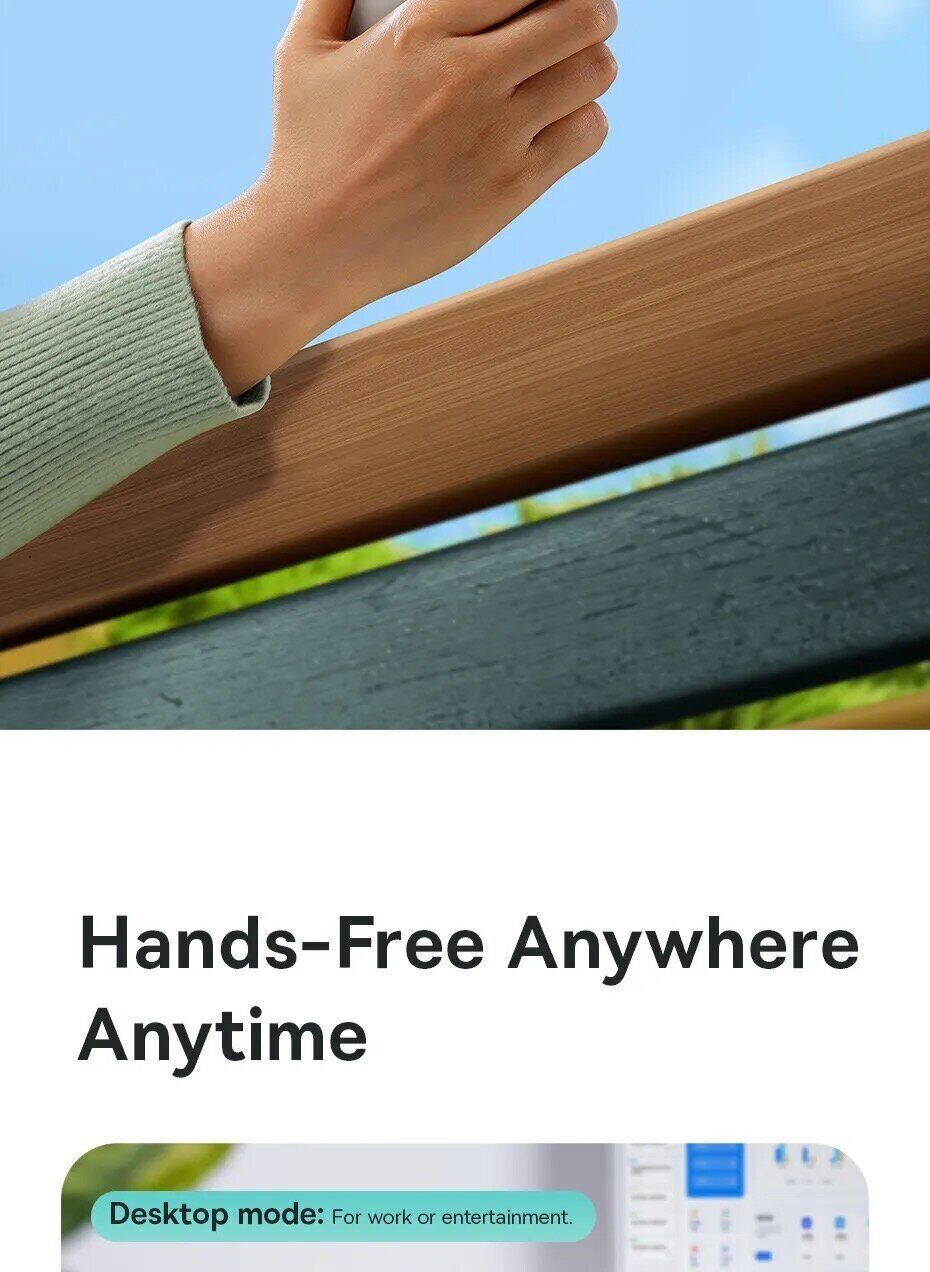 - Складна конструкція з трьома осями дозволяє гнучко налаштовувати положення смартфона під різні сценарії;
