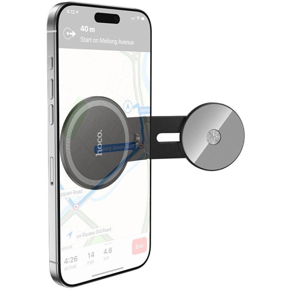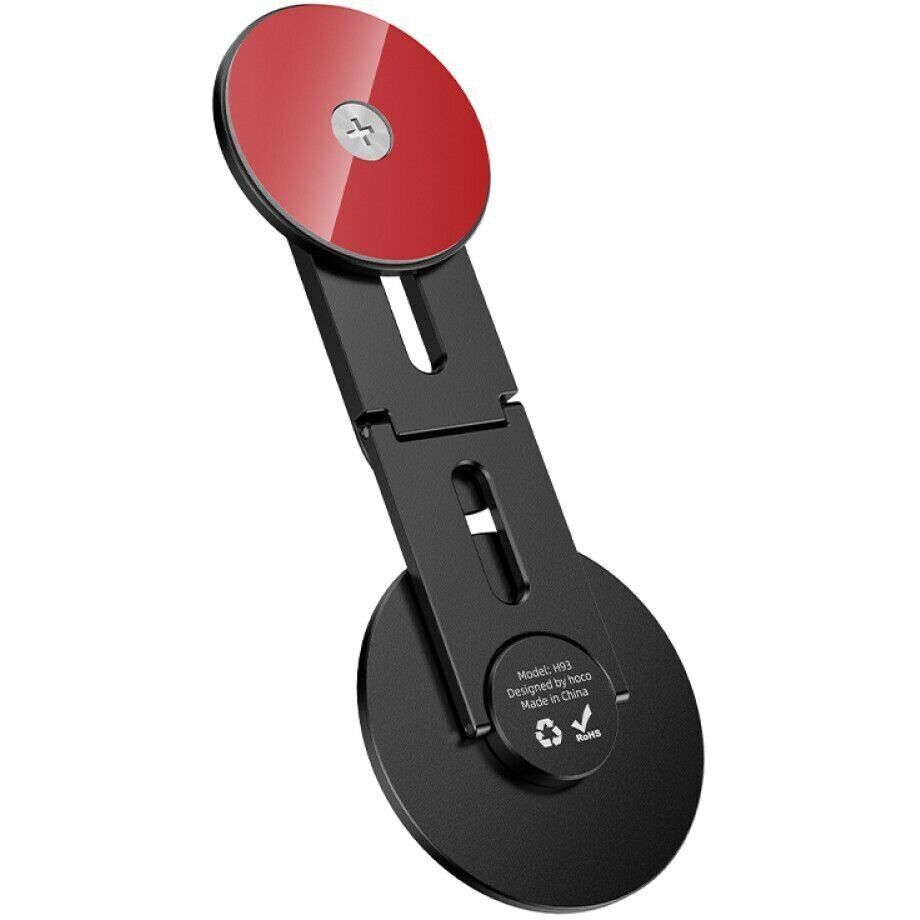 Магнітний тримач Hoco H93 створений для зручного кріплення на автомобільні дисплеї, монітори та задню кришку ноутбука. Корпус з алюмінієвого сплаву з анодованим покриттям виглядає акуратно, стійкий до зносу і підходить для щоденного використання вдома, в офісі та в дорозі. Посилена магнітна площадка з великими магнітними кільцями забезпечує впевнену фіксацію смартфона, знижуючи ризик зміщення при вібраціях під час поїздки або активної роботи. Складна рухома конструкція дозволяє легко налаштувати кут огляду — зручно для навігації, відеодзвінків, перегляду контенту і виконання завдань без необхідності тримати телефон в руках. Тримач розрахований на смартфони діагоналлю 4,5–7,0": найкраще підходить для iPhone з MagSafe, а для інших моделей буде потрібно магнітне кільце або пластина, встановлена на чохол/корпус.
