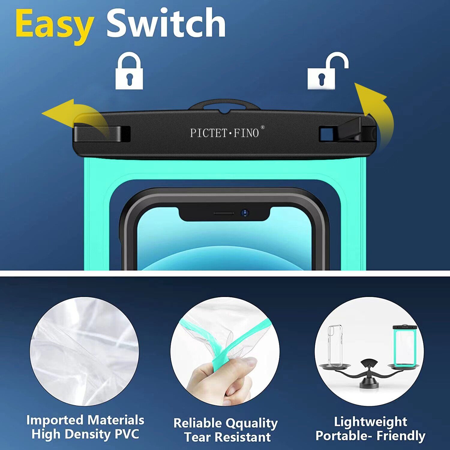 PICTET.FINO RH19 Waterproof Bag – це герметичний виріб для розміщення електроніки під час впливу вологи та води. Підходить для пристроїв із діагоналлю до 10 дюймів, включаючи смартфони, а також може використовуватися для зберігання невеликих аксесуарів. Ступінь захисту IPX8 допускає занурення на глибину до 30 метрів за умови правильного закриття. Корпус виготовлений із ПВХ, який обмежує проникнення вологи, пилу та піску всередину. Прозора лицьова частина дозволяє користуватися сенсорним екраном без необхідності діставати пристрій. Закриття виконане у вигляді фіксуючого механізму, що забезпечує щільне з’єднання елементів. Модель підходить для використання під час плавання, водних прогулянок і підводної зйомки. У комплекті передбачений ремінець для носіння на шиї. Розміри дозволяють розмістити всередині смартфон і додаткові предмети.