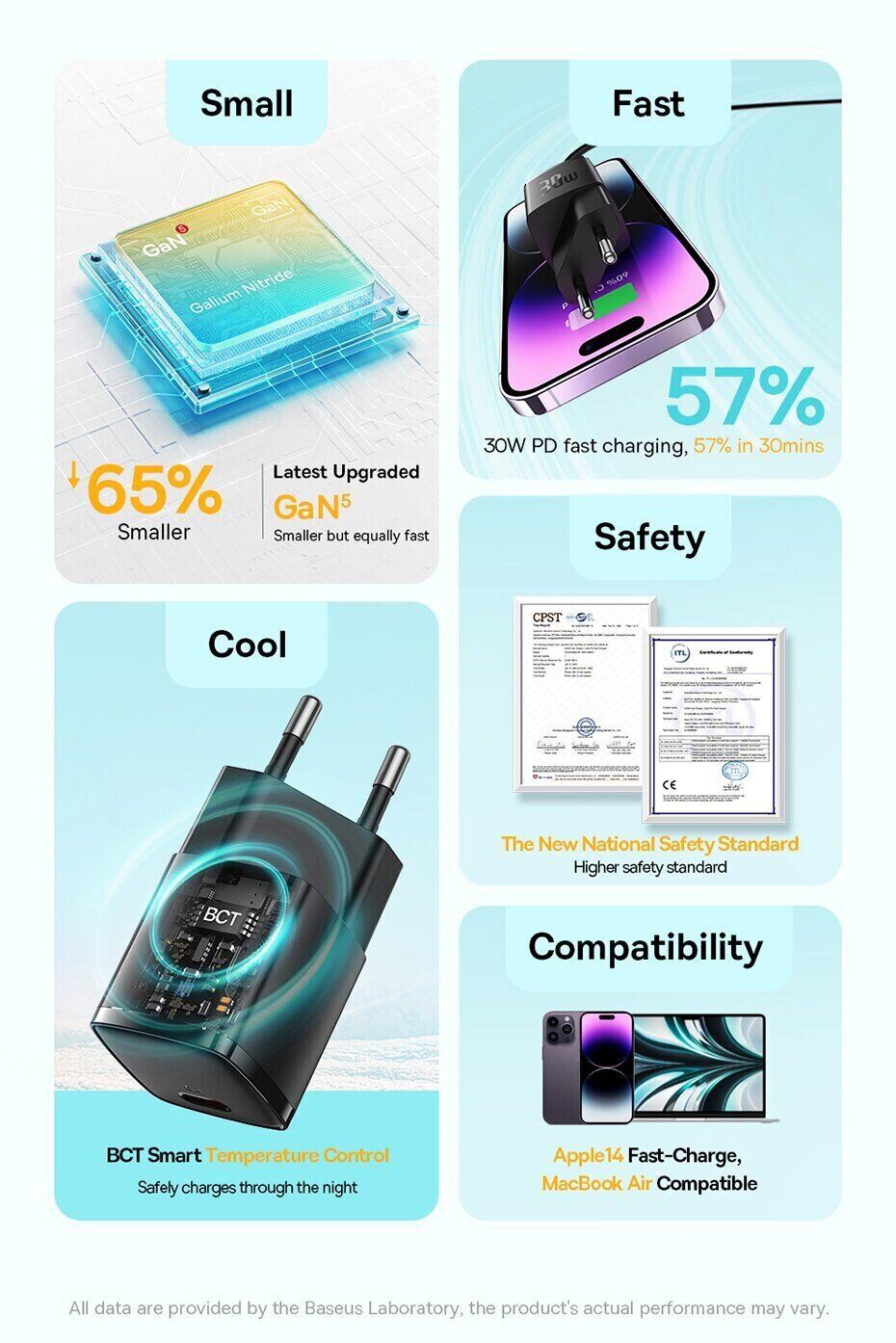 - Інтелектуальна система BCT регулює температуру, забезпечуючи безпечну роботу навіть при тривалій зарядці вночі;