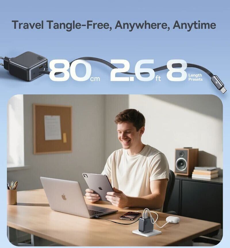 - Вбудований висувний кабель USB-C для зручного використання без зайвих дротів;