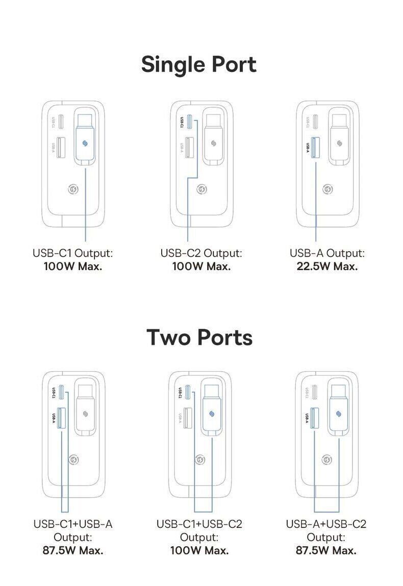 - Вихідна потужність до 100 Вт для зарядки ноутбуків і мобільних пристроїв;