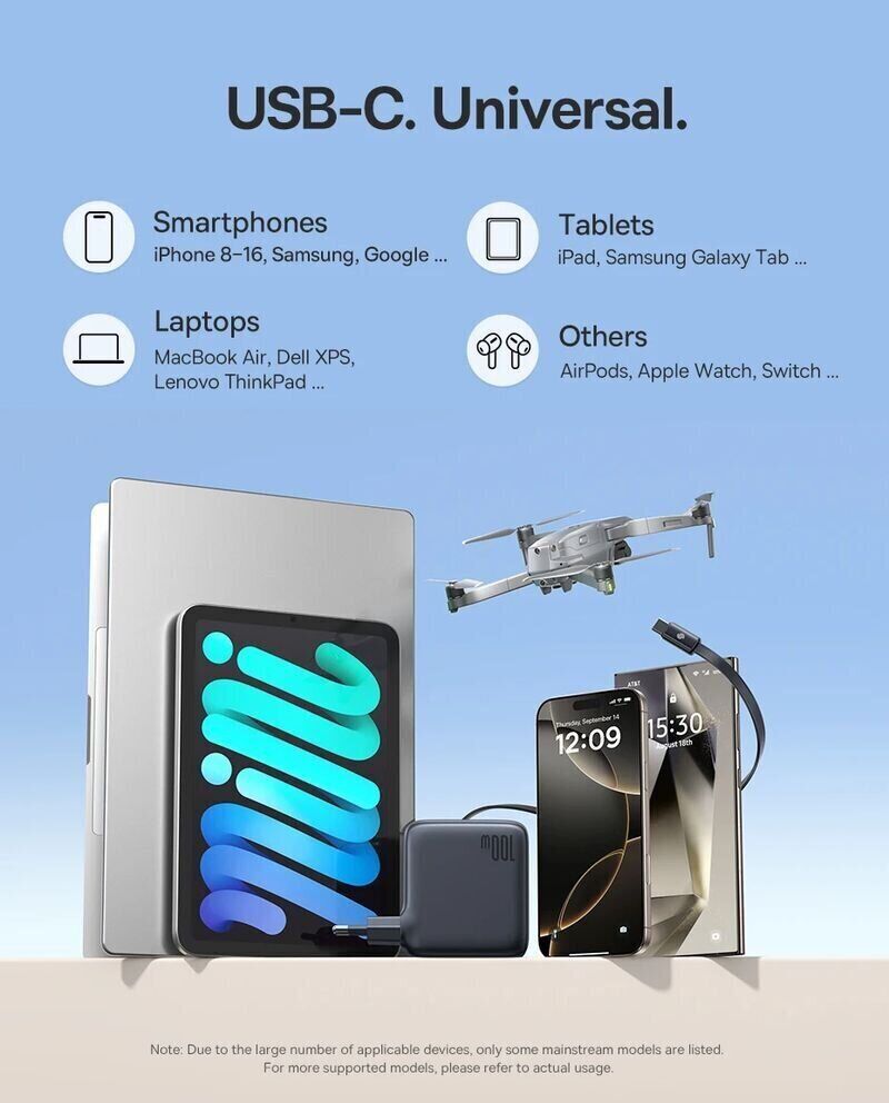 - Порти USB-C та USB-A для одночасної зарядки декількох пристроїв;
