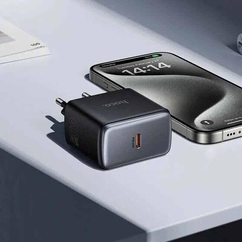 Мережевий зарядний пристрій Hoco C159A Upgrade PD65W (Type-C) — компактний і потужний адаптер, призначений для швидкої та надійної зарядки широкого кола пристроїв: від смартфонів і планшетів до сумісних ноутбуків. Завдяки продуманій конструкції та мінімалістичному форм-фактору модель зручно використовувати вдома, в офісі та брати з собою в поїздки. Підтримка технології Power Delivery з вихідною потужністю до 65 Вт дозволяє істотно скоротити час заряджання, автоматично підбираючи оптимальні параметри під конкретний пристрій. Застосування GaN-технології підвищує енергоефективність адаптера, знижує нагрів і забезпечує стабільну роботу навіть при тривалих навантаженнях. Корпус з міцного PC-пластику стійкий до зносу і механічних впливів, зберігаючи акуратний зовнішній вигляд при щоденній експлуатації.