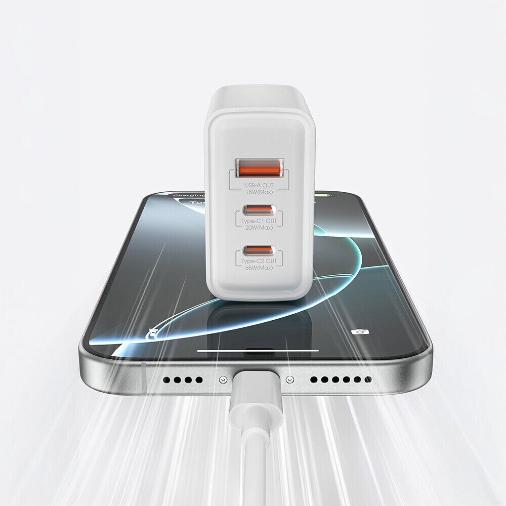 Мережевий зарядний пристрій WIWU Wi-G005 Gan 65W (1U+2C) — сучасний адаптер для швидкої та безпечної зарядки відразу декількох пристроїв. Компактний корпус і потужність до 65 Вт роблять його зручним варіантом для дому, роботи та подорожей. Завдяки GaN-технології зарядний пристрій працює ефективніше і менше нагрівається, зберігаючи стабільну подачу енергії навіть при одночасному заряджанні смартфона, планшета і ноутбука. Підтримка популярних стандартів швидкої зарядки допомагає скоротити час очікування, а інтелектуальний розподіл потужності автоматично підбирає оптимальні параметри для кожного підключеного гаджета. Продумане розташування роз'ємів спрощує підключення різних кабелів, а якісні матеріали і збірка розраховані на щоденну експлуатацію.