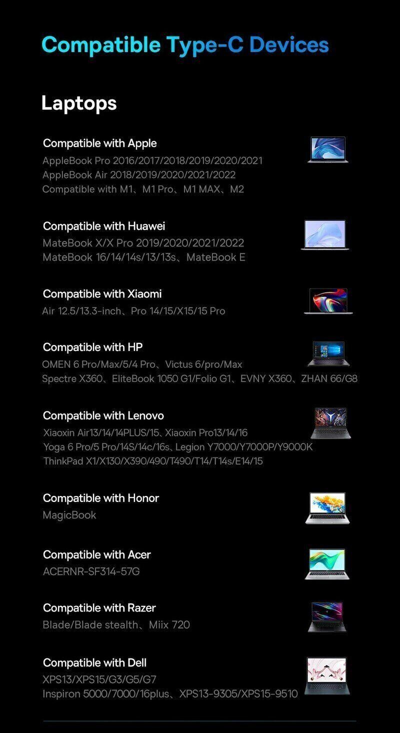 - Type-C с Power Delivery до 100 Вт для зарядки устройства во время работы;