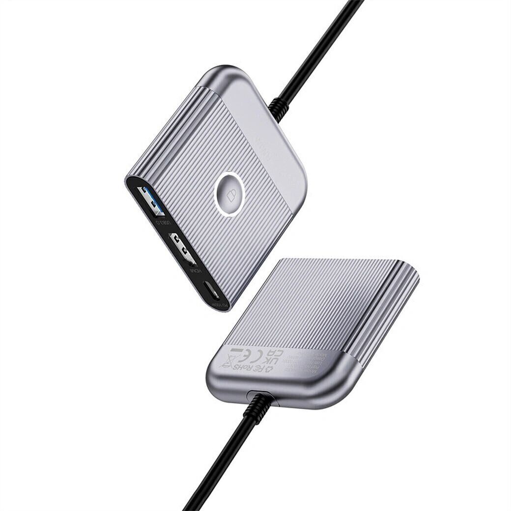 USB HUB WIWU Wi-HB002 Type-C to USB+Type-C+HDMI — это компактная док-станция формата 3-в-1, предназначенная для расширения возможностей устройств с разъёмом USB Type-C. Аксессуар объединяет HDMI, USB 3.0 и дополнительный порт USB-C, позволяя одновременно подключать внешний дисплей, периферийные устройства и питание. Поддержка вывода изображения в разрешении до 4K при 60 Гц обеспечивает чёткую и плавную картинку при работе, просмотре видео и презентациях.