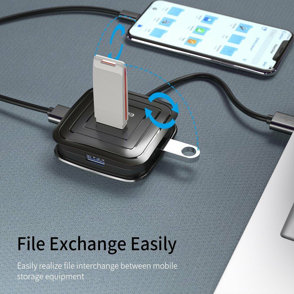 USB HUB Essager 3.0 (4USB) – это действительно полезное решение, предоставляющее возможность увеличить количество свободных USB-разъёмов сразу до 4-х штук, с удобным расположением и высокой скоростью передачи данных. Аксессуар отличается высоким качеством изготовления, скромными размерами и не большим весом, что делает его приятным в использовании, долговечным и надёжным помощником на каждый день.