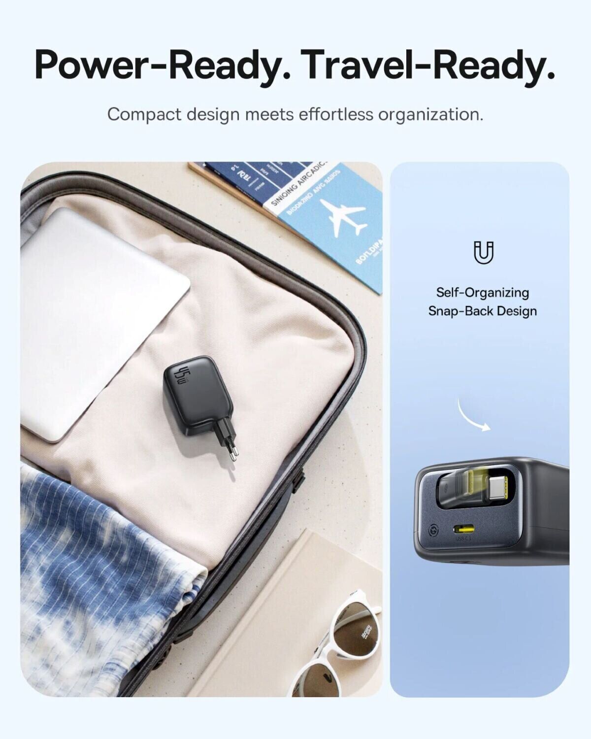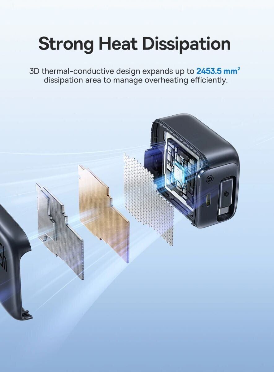 - GaN-технология для высокой эффективности, меньшего нагрева и компактного корпуса;
