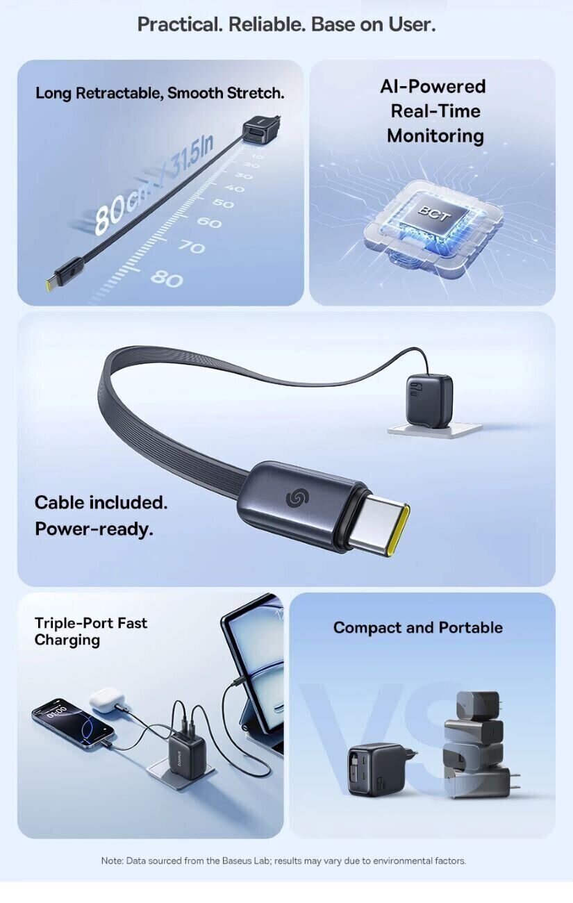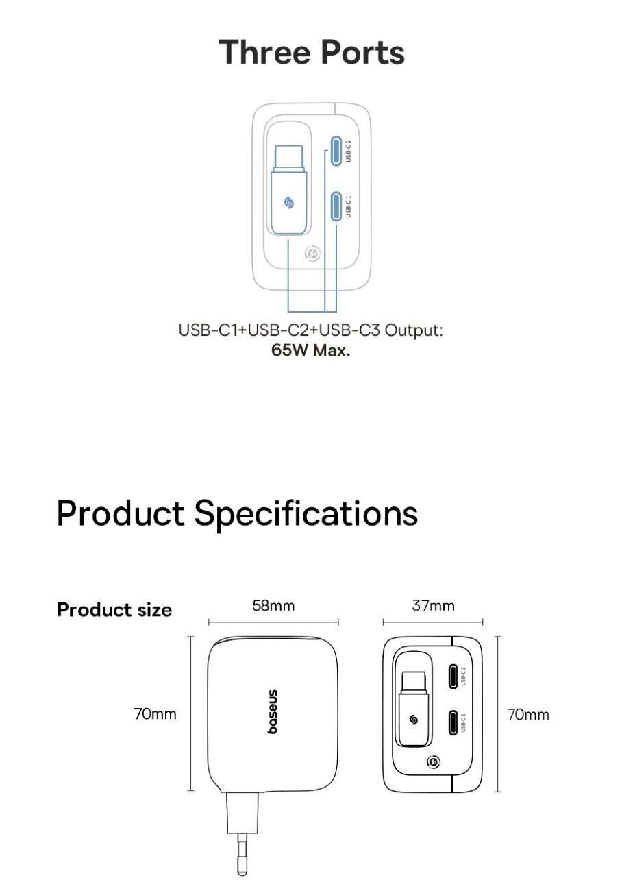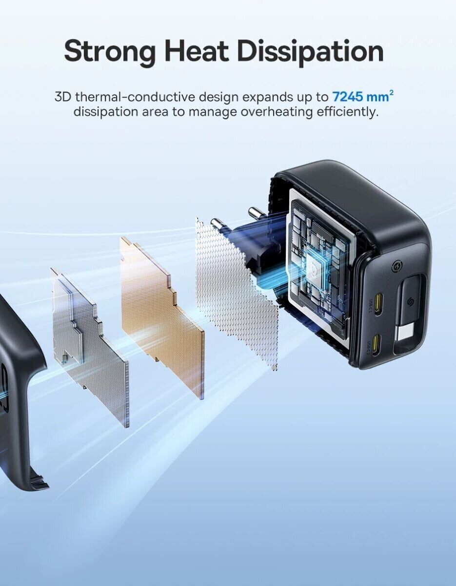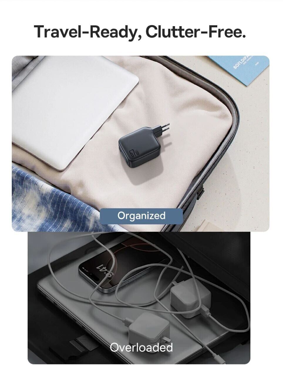 - GaN-технология для высокой энергоэффективности, меньшего нагрева и компактных размеров;