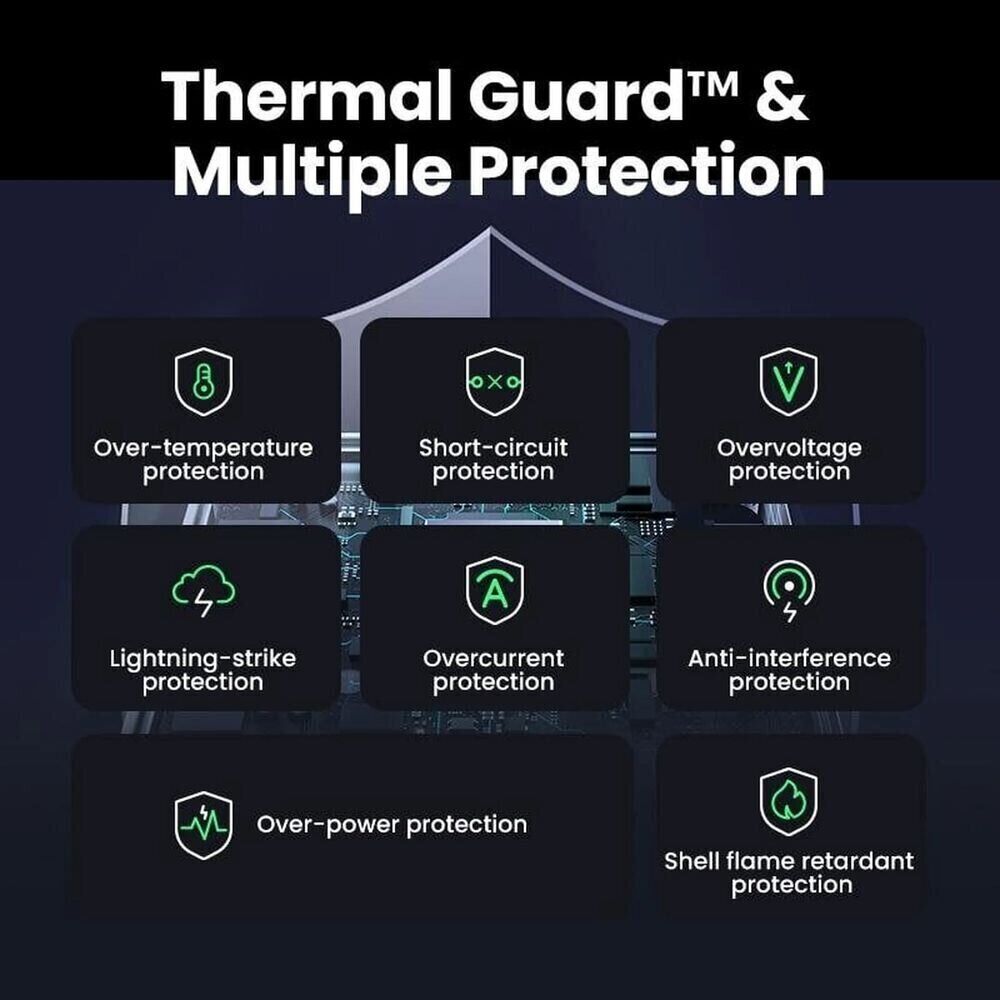 - GaN-технология для высокой мощности при компактных размерах и более низком нагреве;