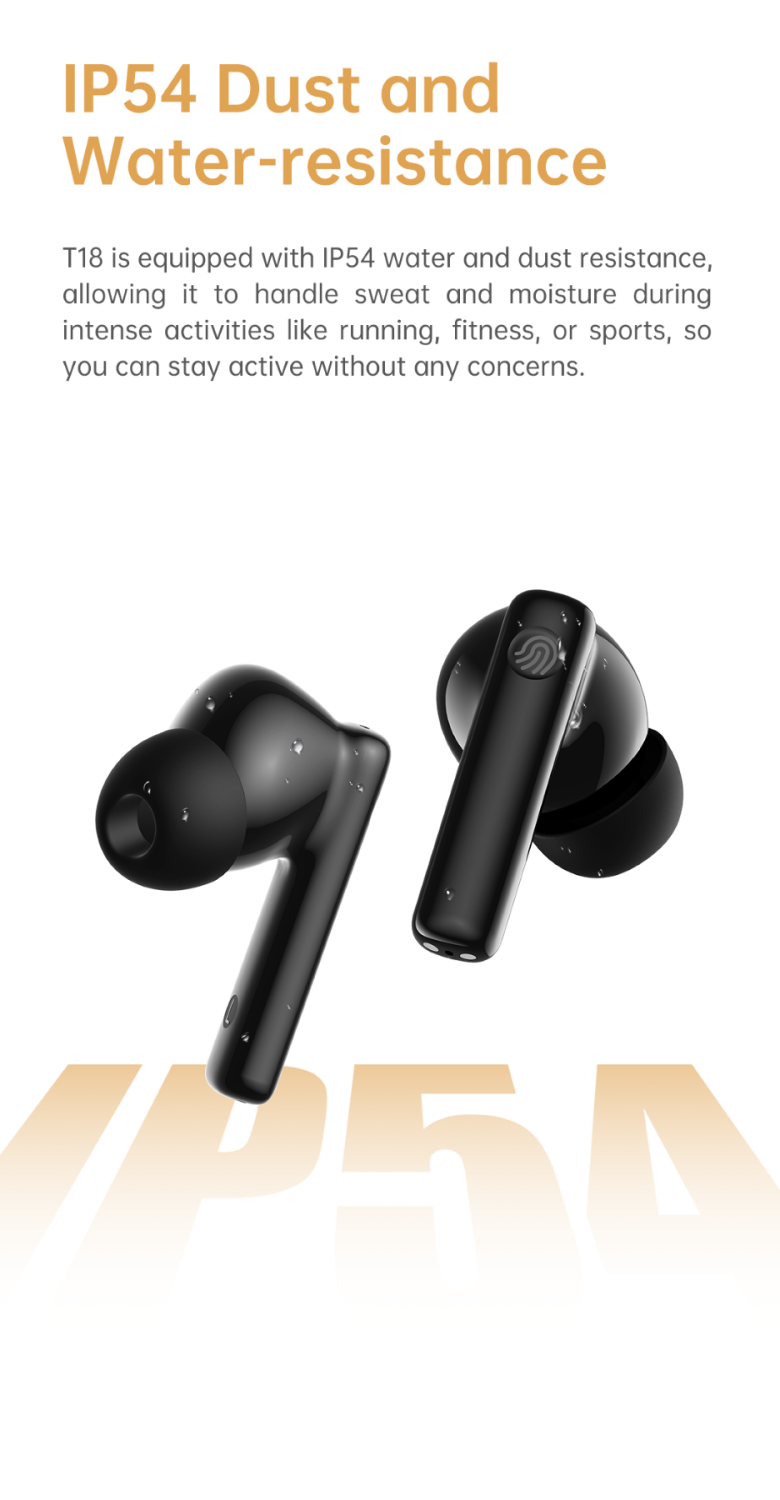 Беспроводные наушники Black Shark T18 (BS-T18) — современная TWS-гарнитура для пользователей, которым важны насыщенный звук, комфортная посадка и полная свобода движений. Внутриканальная вакуумная конструкция обеспечивает плотное прилегание и способствует эффективной пассивной шумоизоляции, а активное шумоподавление до 45 дБ позволяет глубже погрузиться в музыку, игры и контент. Наушники поддерживают Hi-Fi звучание с выраженными басами и чистыми высокими частотами, сохраняя детализацию на любом уровне громкости. Автономность до 40 часов с учётом зарядного кейса делает модель удобной для длительного использования без частых подзарядок, а встроенная индикация помогает контролировать уровень батареи. Защита по стандарту IP54 обеспечивает устойчивость к пыли и брызгам воды, что особенно актуально для активного образа жизни.